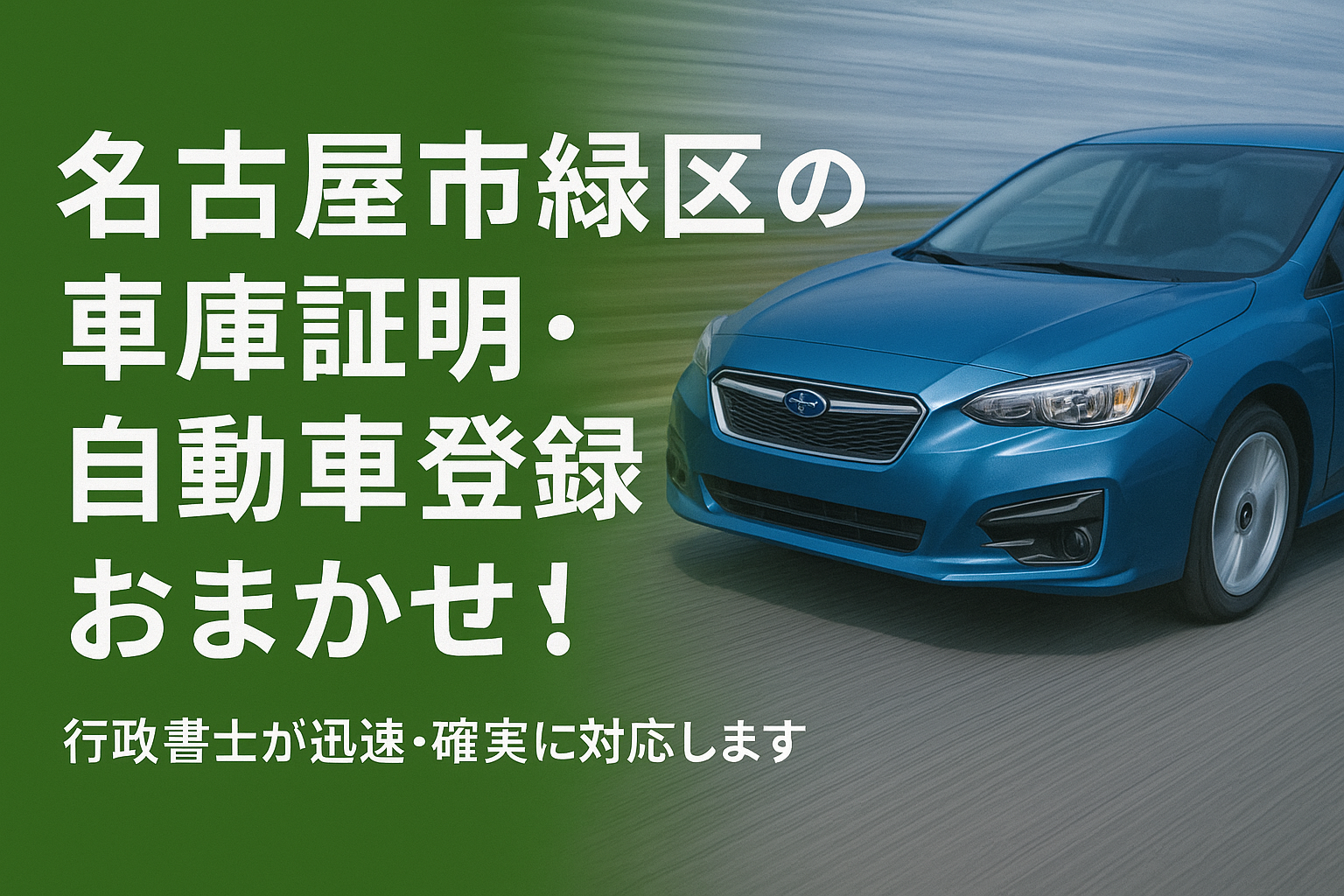 当事務所では、名古屋市(緑区、天白区、南区など)を中心に車庫証明・自動車登録の申請代行を行っております。